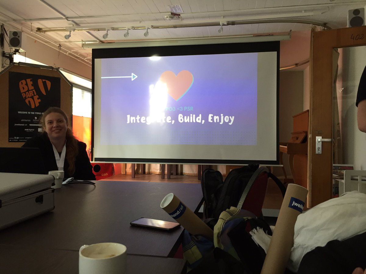 TYPO3 <3 PSR mit @psychomieze #T3CRR Ich freue mich, dass ich einen Sitzplatz habe 😄