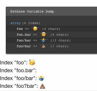 {myArray.{myIndex}}... as long the index does not contain a "." @NamelessCoder is this worth a ticket? Or everything as intended?