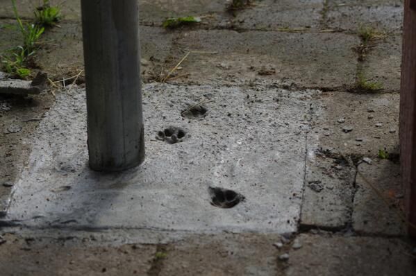 : Gestern frisch betoniert und heute schon #Katzenpfoten drin.